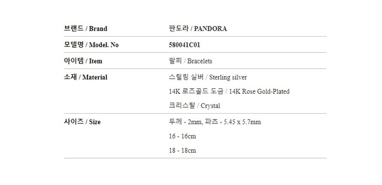 판도라 팔찌 580041C01 스파클링 하트 테니스 로즈 여성팔찌 여자팔찌 당일발송