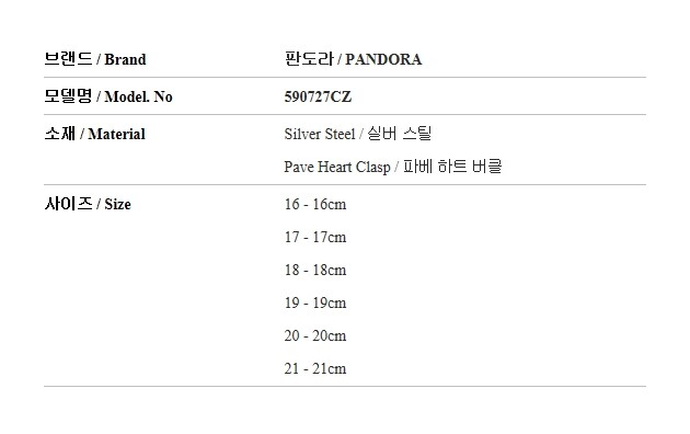 판도라 팔찌 590727CZ 모먼트 파베 하트 실버 팔찌 당일발송