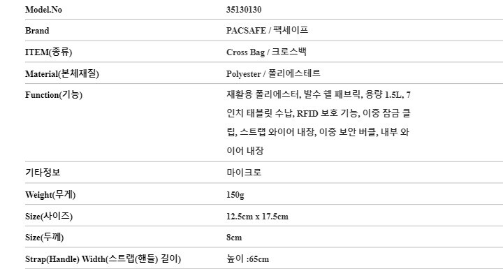 | 5. 제조사 | 팩세이프/MACHO-병행수입 |