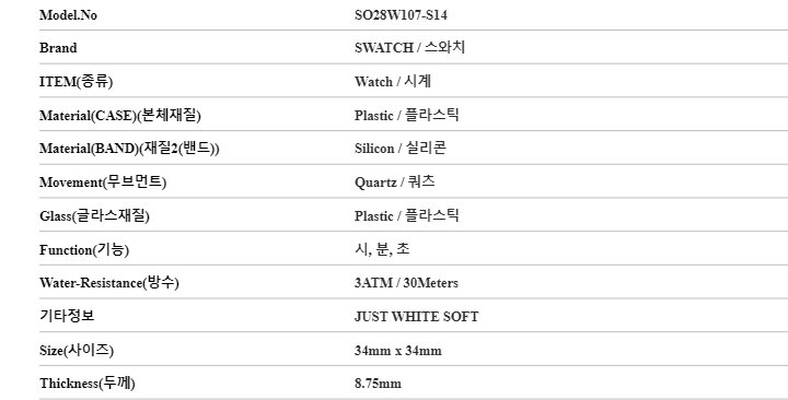 스와치 SWATCH SO28W107-S14 NEW CORE JUST WHITE SOFT 여성 우레탄시계