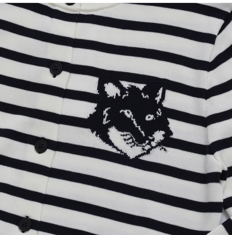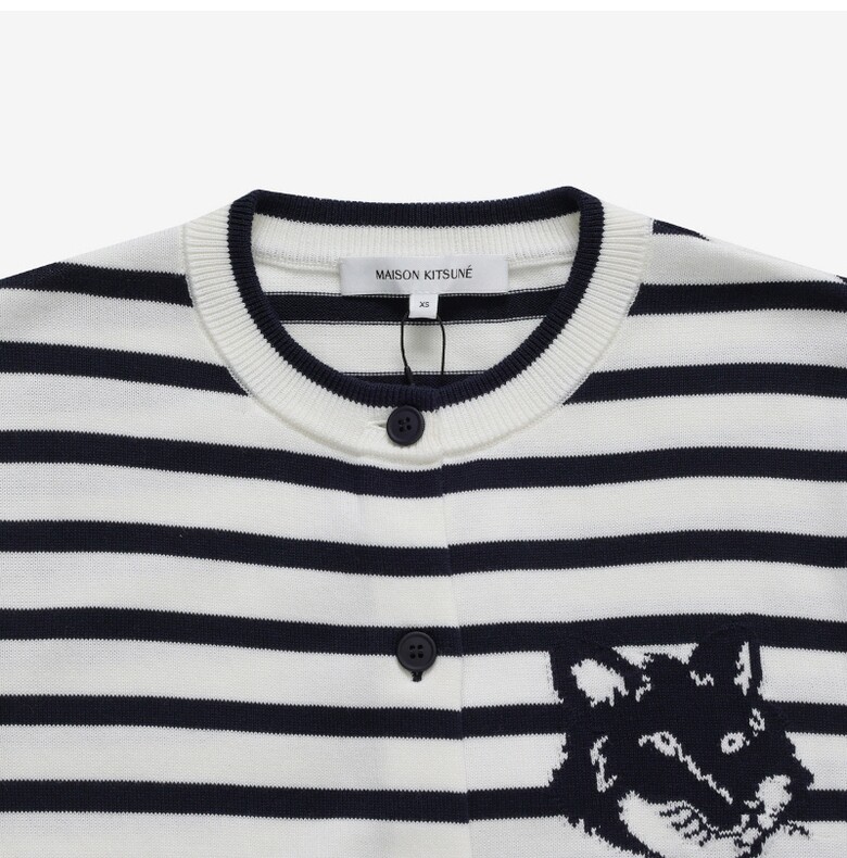 메종키츠네 MW00502KT1102 S492 폭스 헤드 인타르시아 스트라이프 크롭 여성 가디건