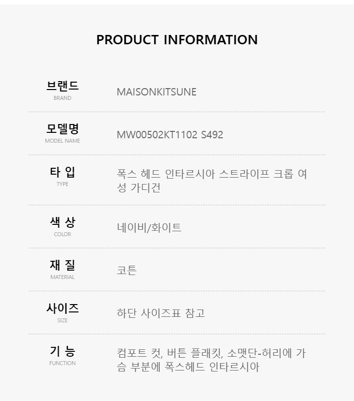 | 4. 제조사 | 메종키츠네/MACHO-병행수입 |