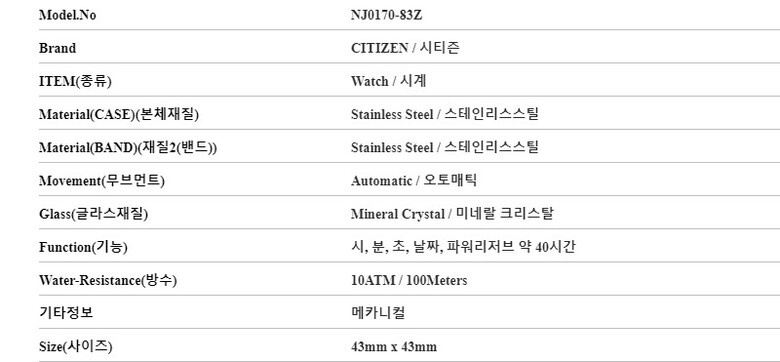 시티즌 시계 NJ0170-83Z 메카니컬 남성메탈시계 당일발송