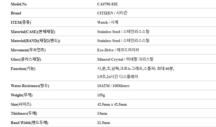 | 7-2. 시계 - 기능, 방수 등 | 상세정보참조 |