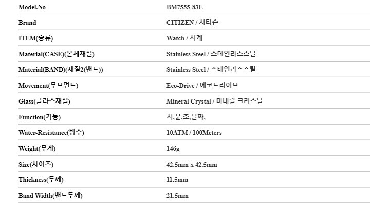 시티즌 시계 BM7555-83E 남성메탈시계 당일발송