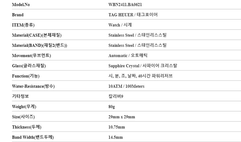 | 7. 주요 사양 | 스테인리스스틸 시계 오토매틱 |