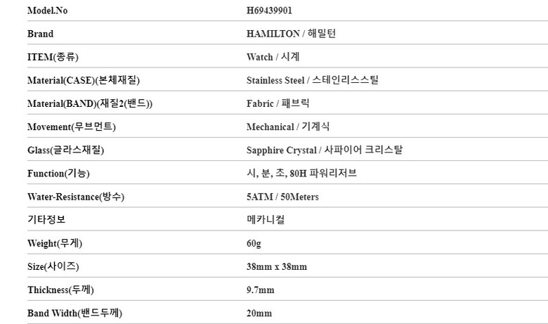 | 7. 주요 사양 | 스테인리스스틸 시계 기계식 |