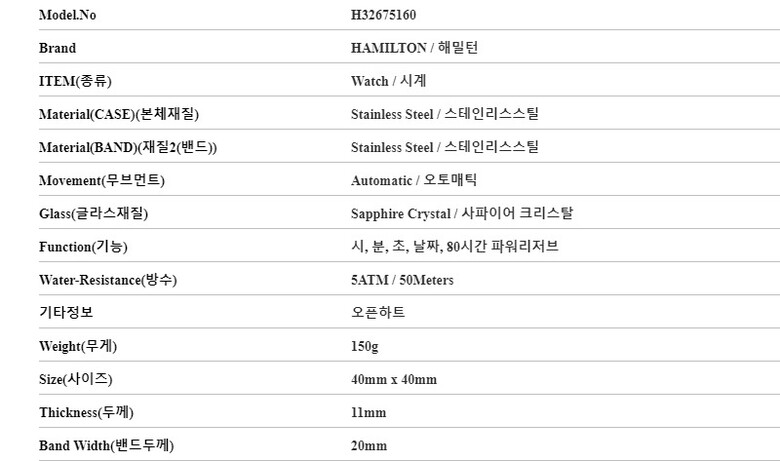 | 7-2. 시계 - 기능, 방수 등 | 상세정보참조 |