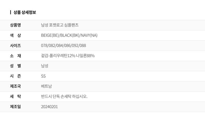 2. 색상 BEIGE(BE)/BLACK(BK)/NAVY(NA)
