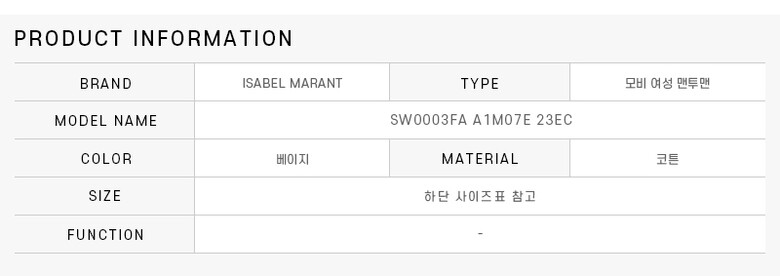이자벨마랑 맨투맨 SW0003FA A1M07E 23EC 모비 여성맨투맨 당일발송
