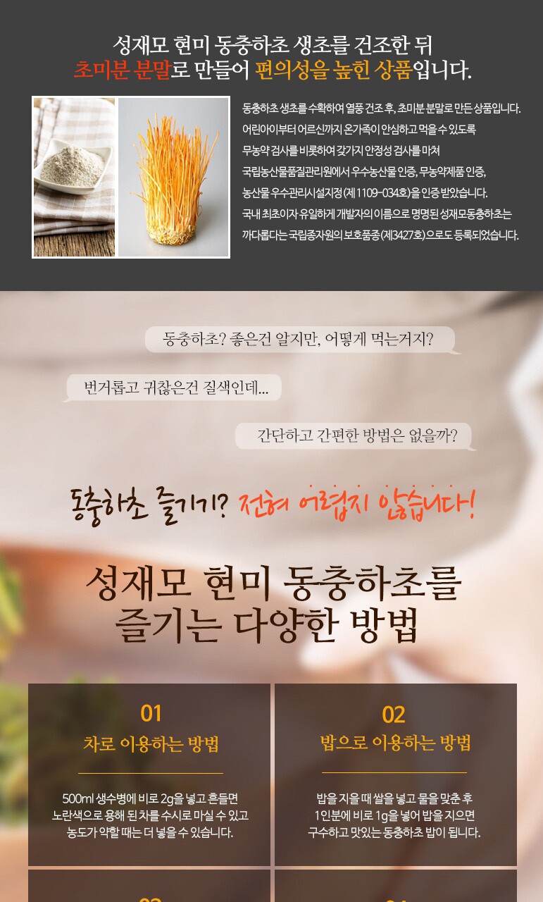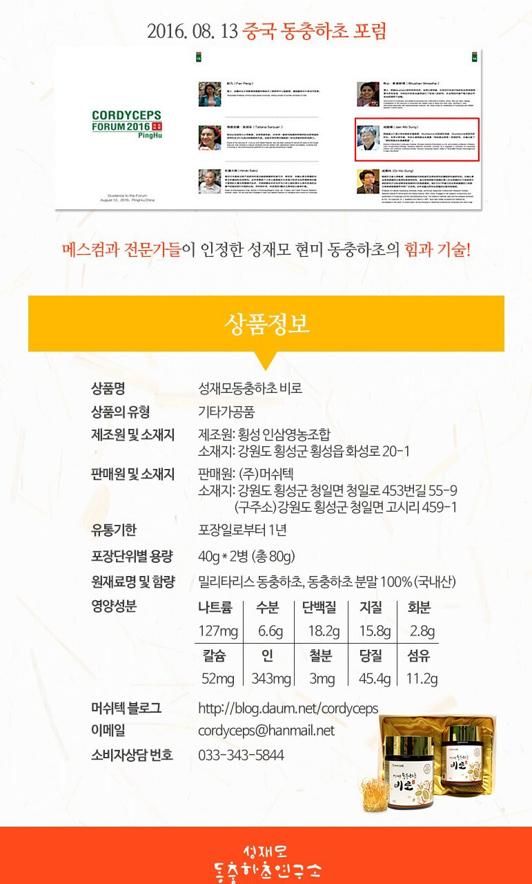 1. 품명 및 모델명 | 성재모동충하초/비로 5 |