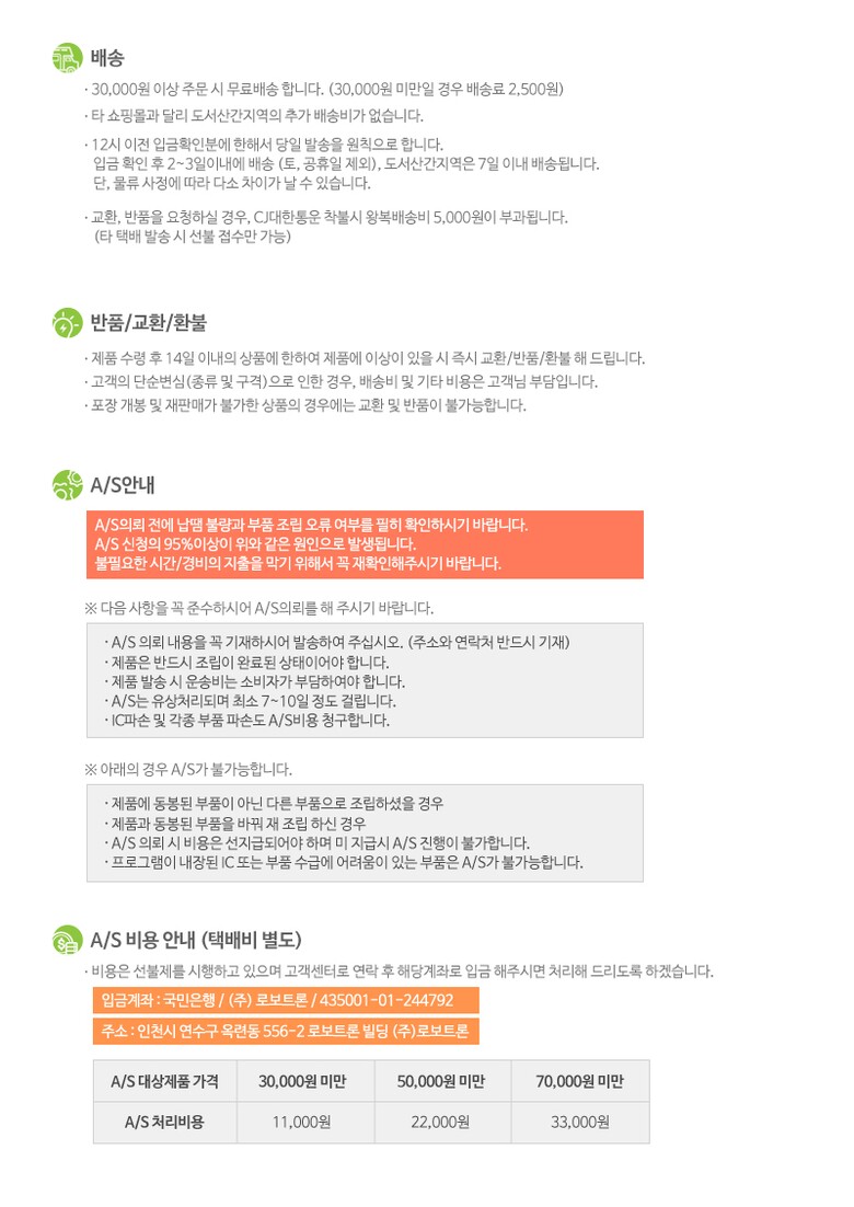 • 모든 규정은 전자상거래법에 의거하며, 택배사정으로 배송이 지연된 경우 재화를 공급받은 날로부터 7일 이내에 반품 가능합니다.