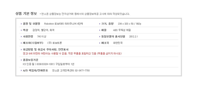 1. 품명 및 모델명 Robotron 로보타미 타미주니어 4단계