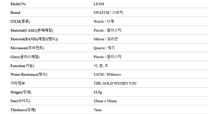 | 3. 제조사 | 스와치/(주)언커먼레이블-병행수입 |