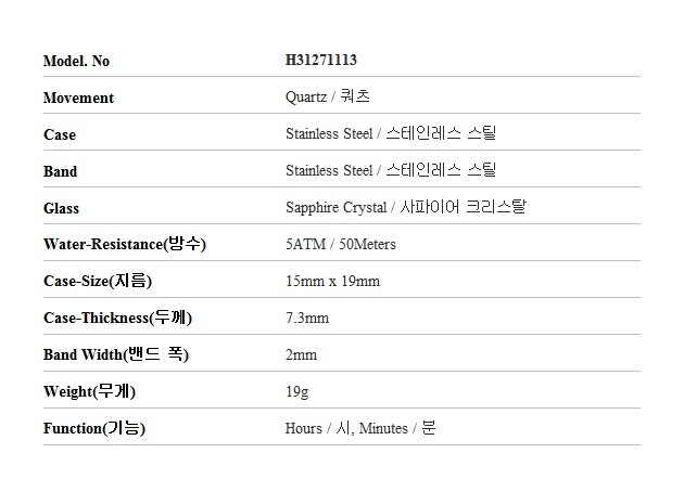 7. 주요 사양 스테인리스스틸 시계 쿼츠