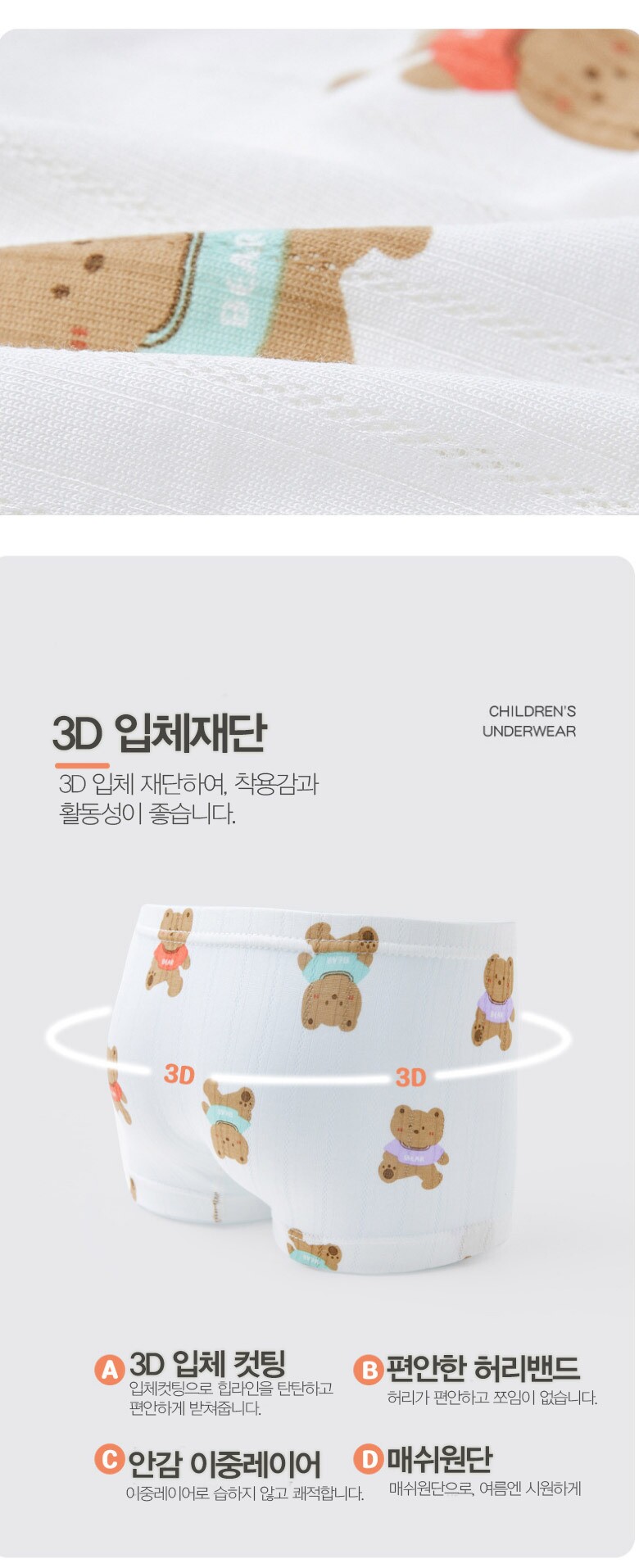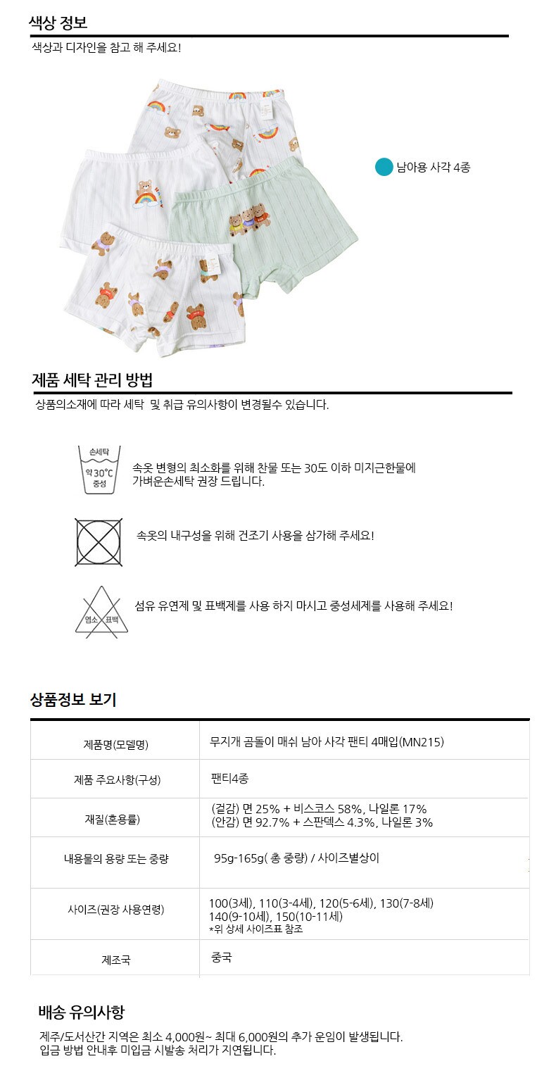 무지개곰돌이 매쉬 남아 사각팬티 4매(MN215)