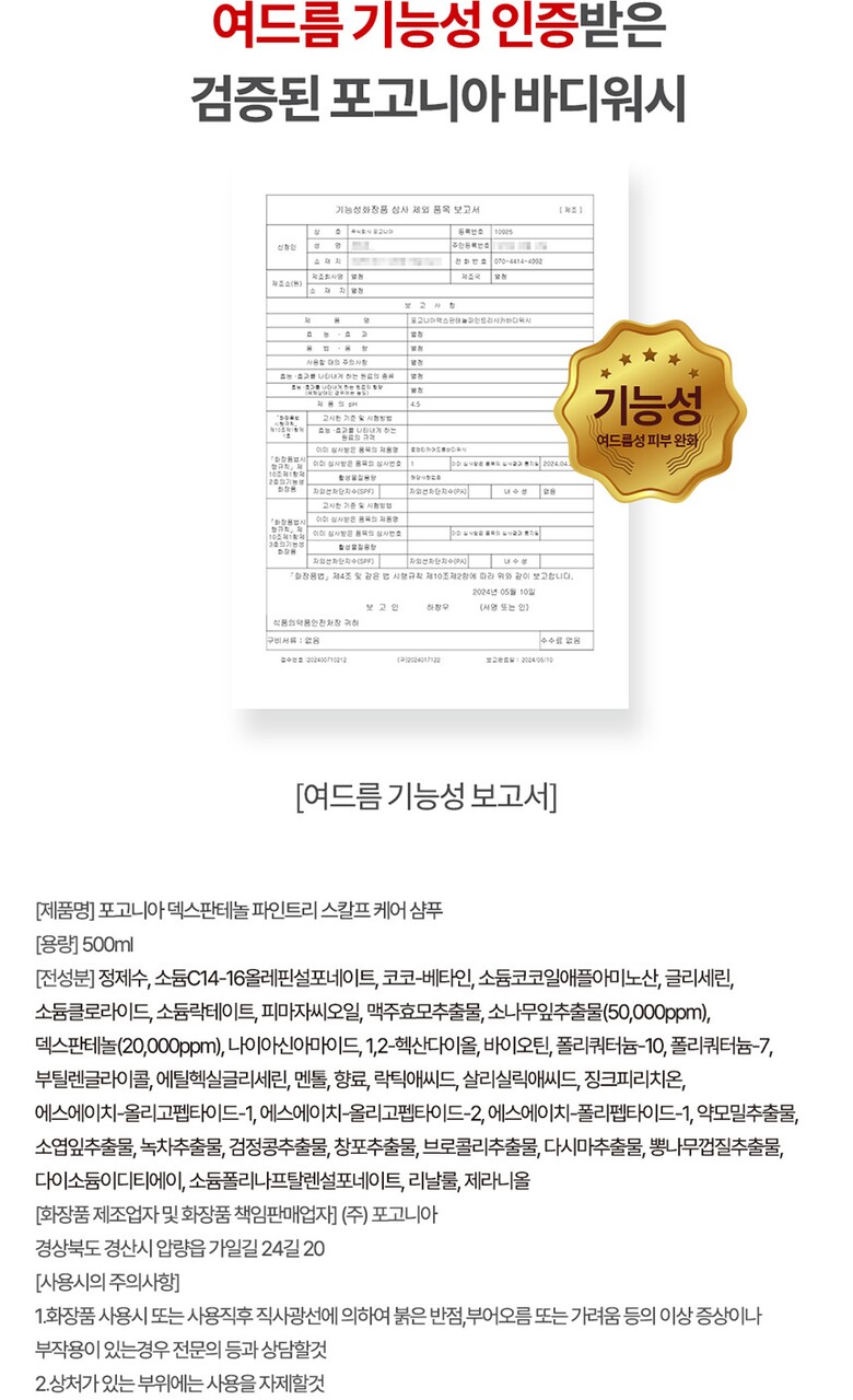 8. 기능성 화장품의 경우 화장품법에 따른 식품의약품안전청 심사 필 유무 | 상세페이지 참조 |