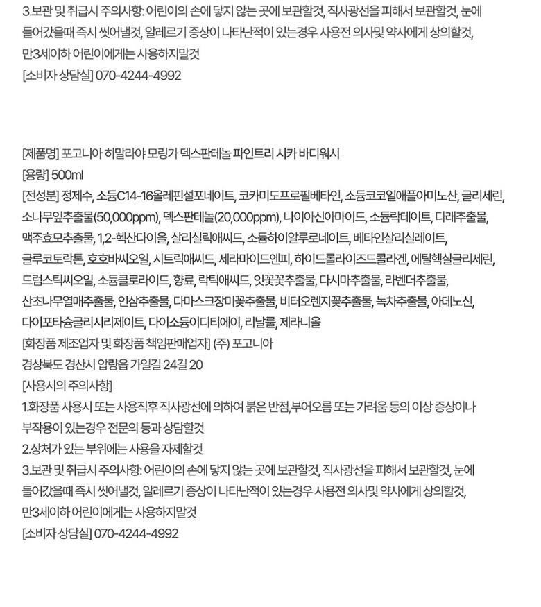 포고니아 덱스판테놀 파인트리 샴푸&바디워시 500ml