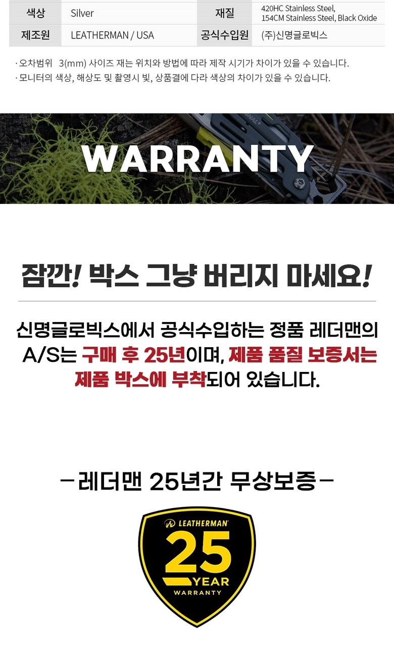 7. 제조사 | LEATHERMAN/신명글로빅스 |