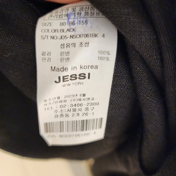 | 1. 제품 소재 (섬유의 조성 또는 혼용률을 백분율로 표시, 기능성인 경우 성적서 또는 허가서) | 린넨100% |