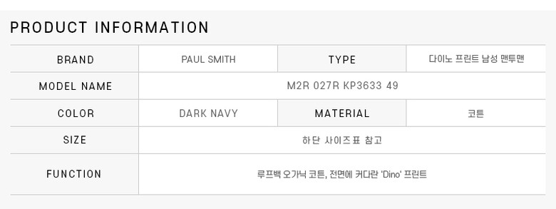 폴스미스 맨투맨 M2R 027R KP3633 49 다이노 프린트 남성맨투맨 당일발송