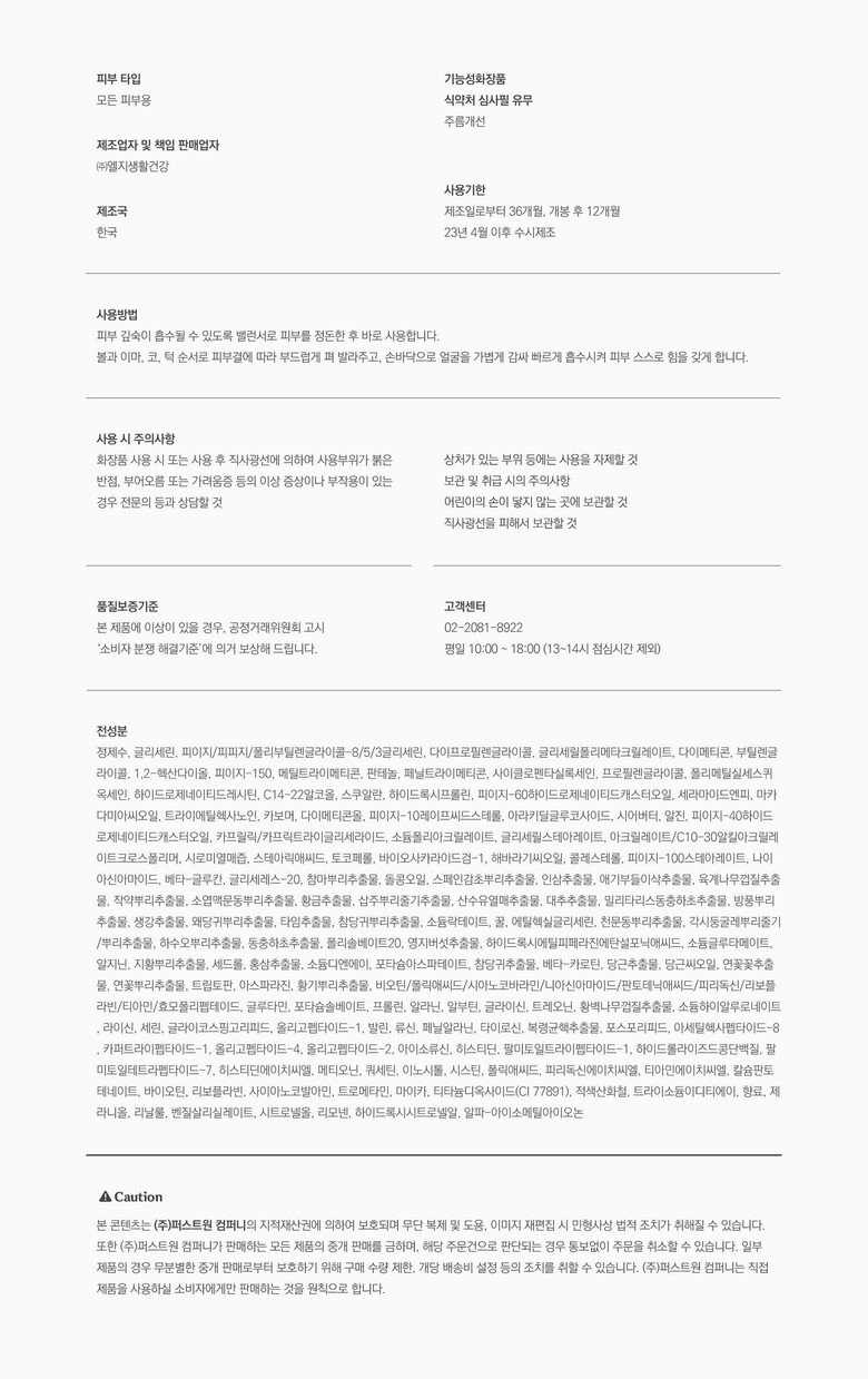 8. 기능성 화장품의 경우 화장품법에 따른 식품의약품안전청 심사 필 유무 상품상세참조