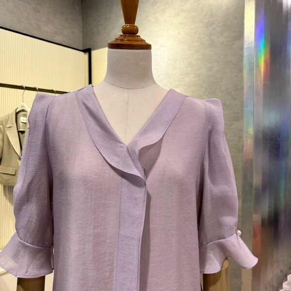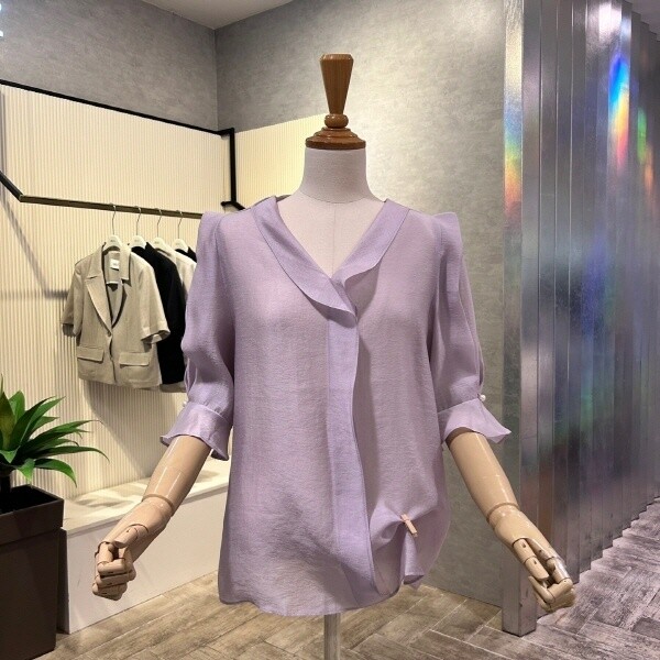 2024년 s/s 신상 ?V넥 프릴 라인블라우스?입니다.