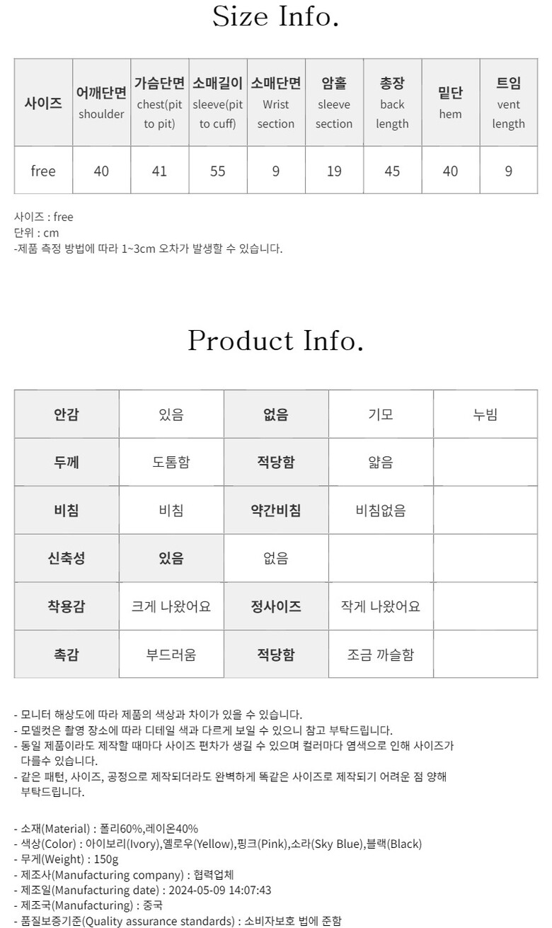 - FABRIC(소재) : 폴리60%,레이온40%