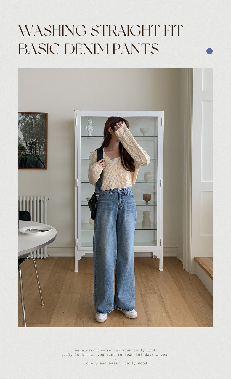 네쥬 여성 봄 여름 와이드 일자 워싱 기본 데일리 데님 팬츠