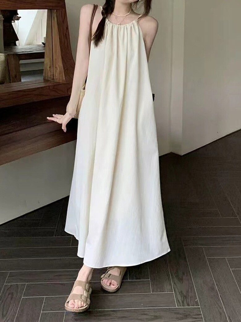 [ 메레크 뒷리본 끈나시 루즈핏 롱원피스 ]