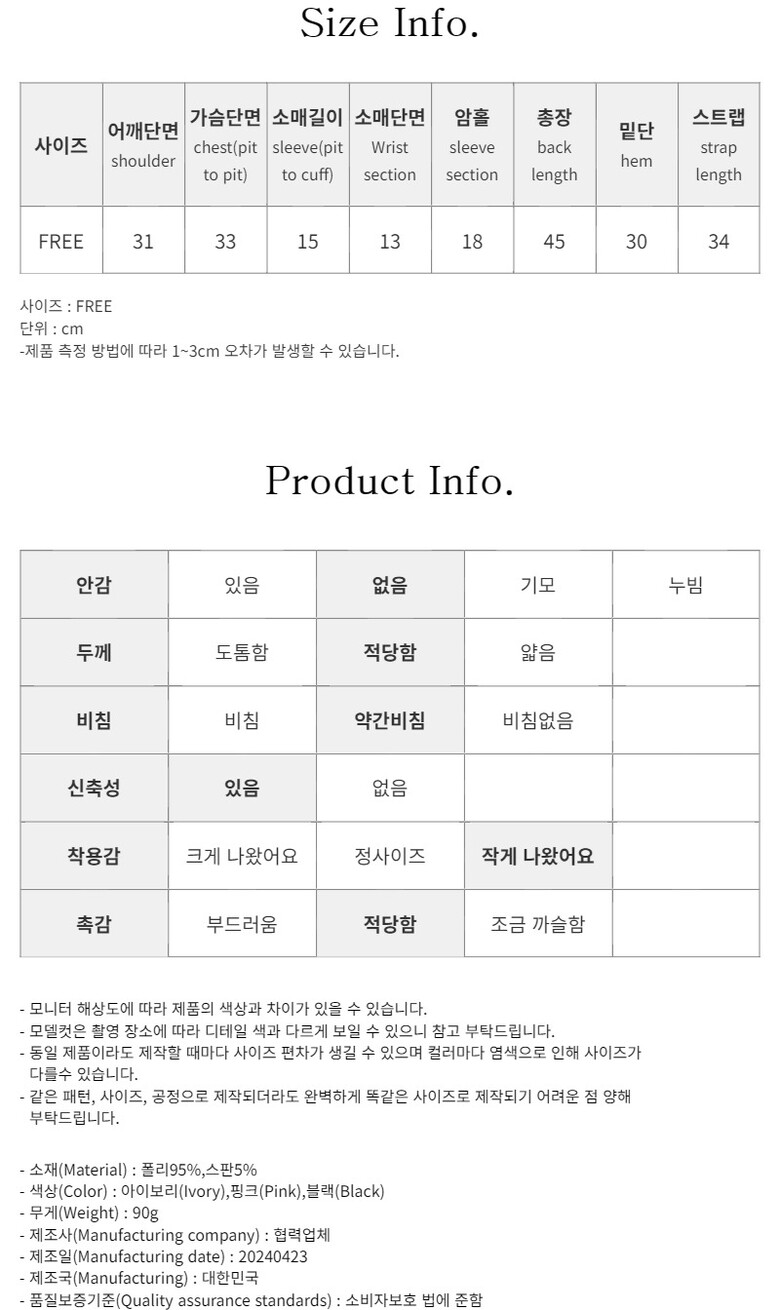 - COLOR(색상) : 아이보리(Ivory),핑크(Pink),블랙(Black)