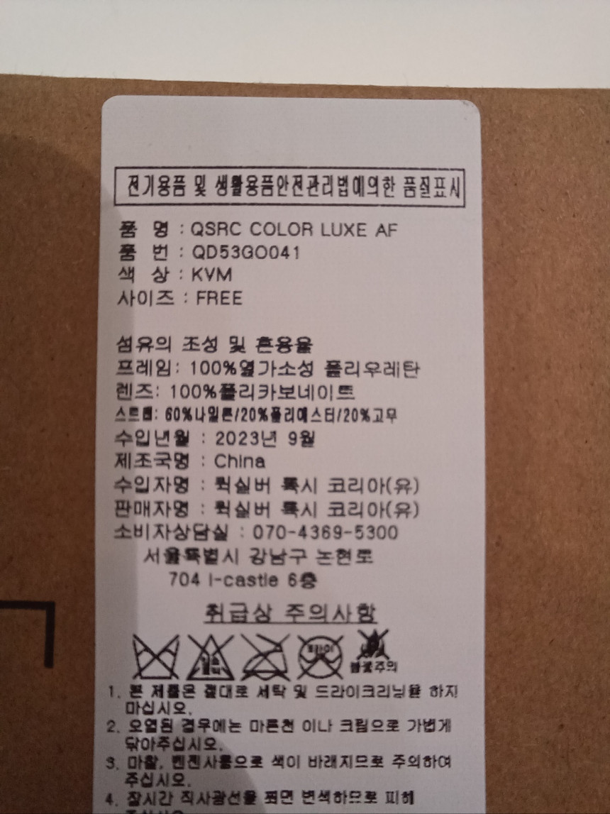 | 2. 소재 | 프레임: 100%열가소성 폴리우레탄/렌즈: 100%폴리카보네이트 /스트랩: 60% 나일론/20% 고무/ 20%폴리에스터 |