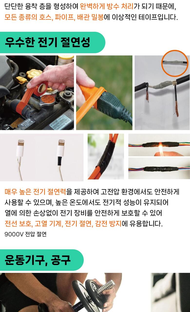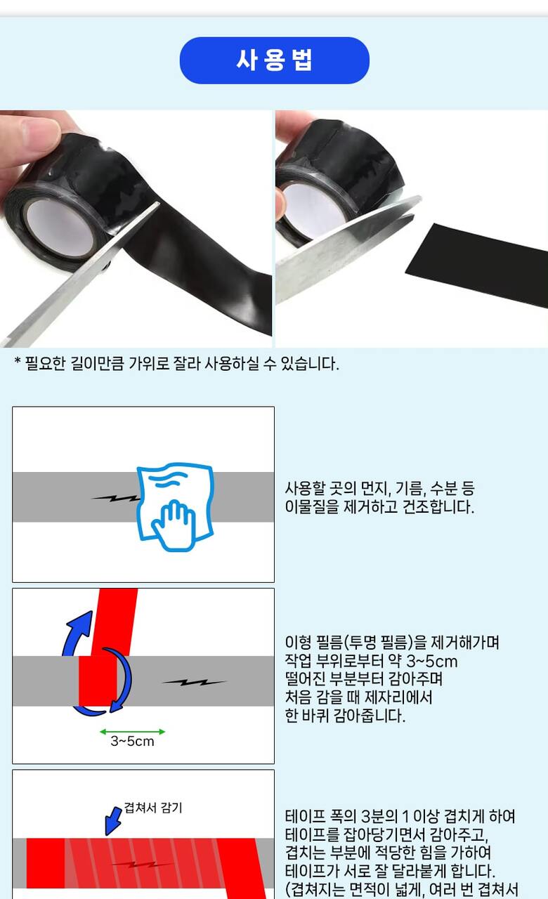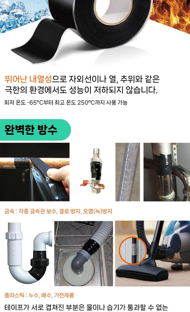 국산 자기융착 실리콘테이프 10미터 배관보수 방수 절연 셀프수리테이프