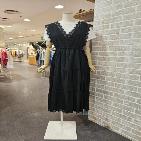 LC31D8OP554X_레이스 브이넥 캉캉 원피스