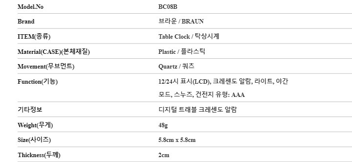 7. 주요 사양 플라스틱 탁상시계 쿼츠