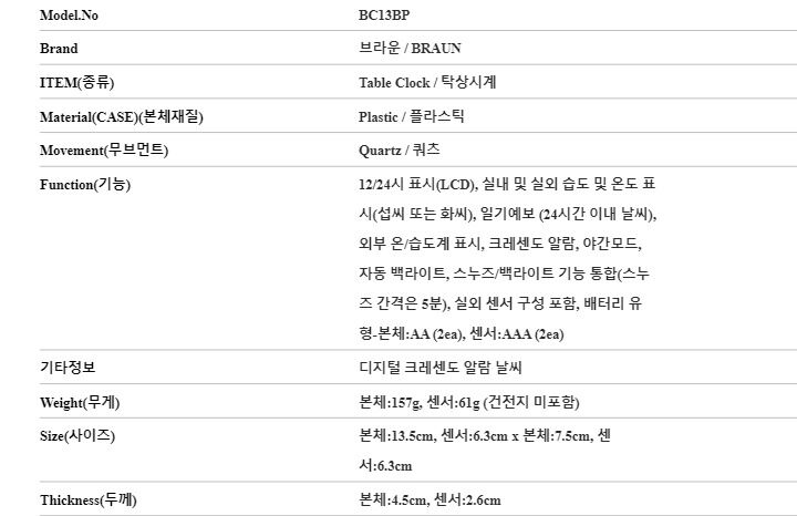 7. 주요 사양 플라스틱 탁상시계 쿼츠