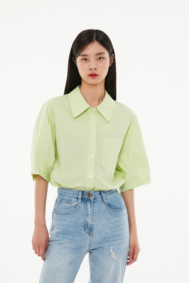 볼 륨 소 매 오 버 핏 셔츠 ~