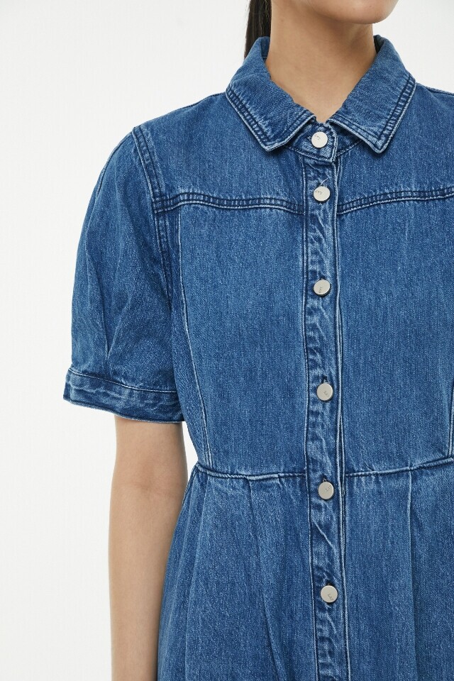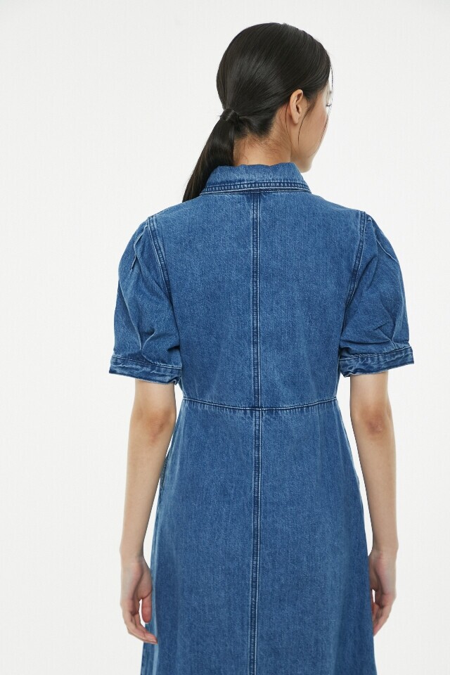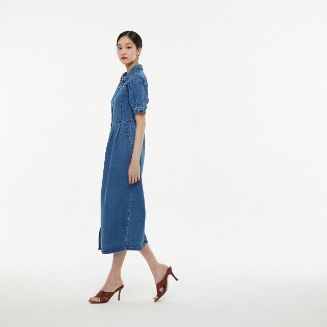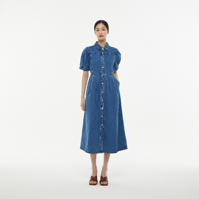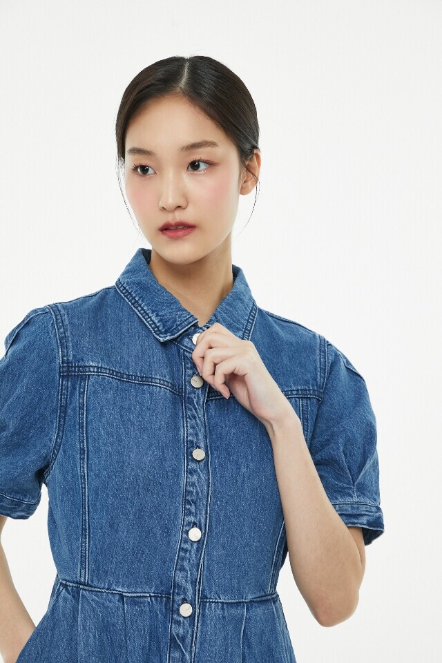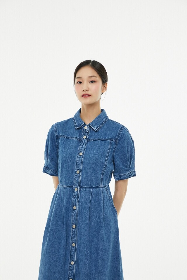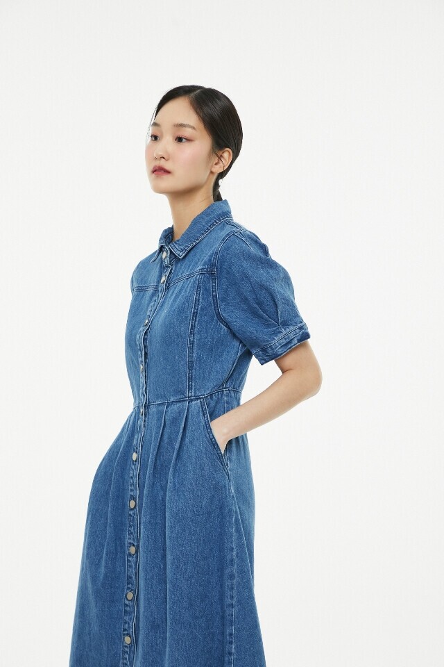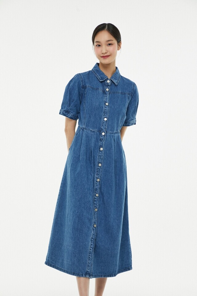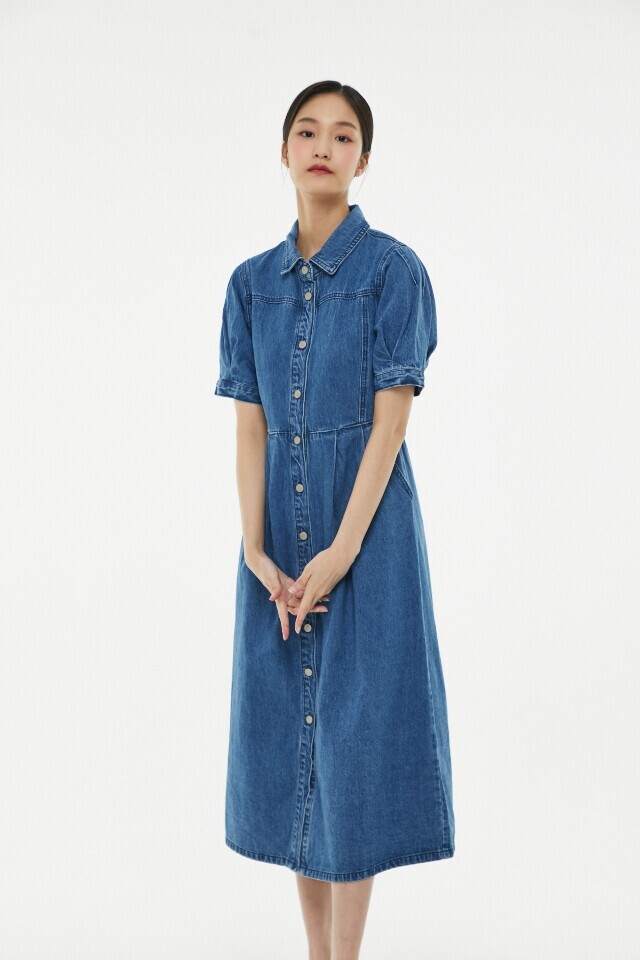 AP2DO462 맞 턱 반팔 데님 롱 원피스