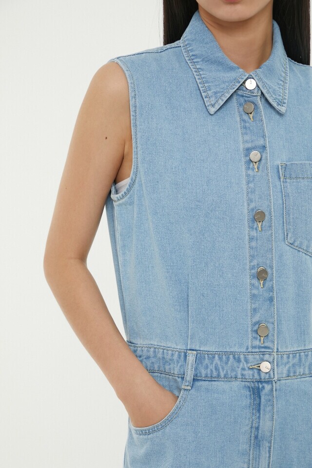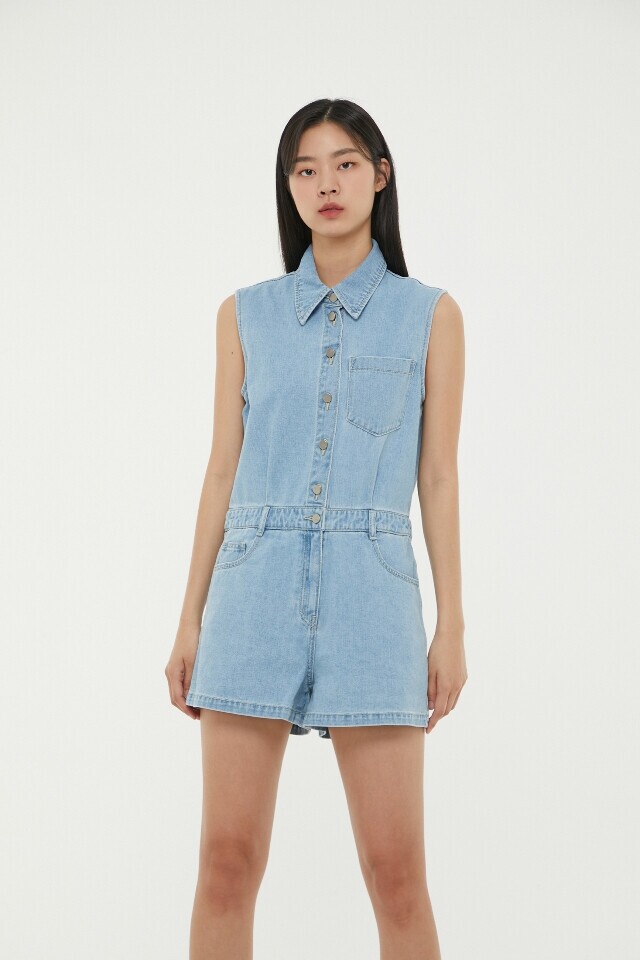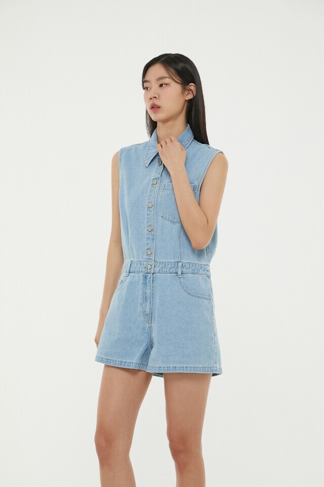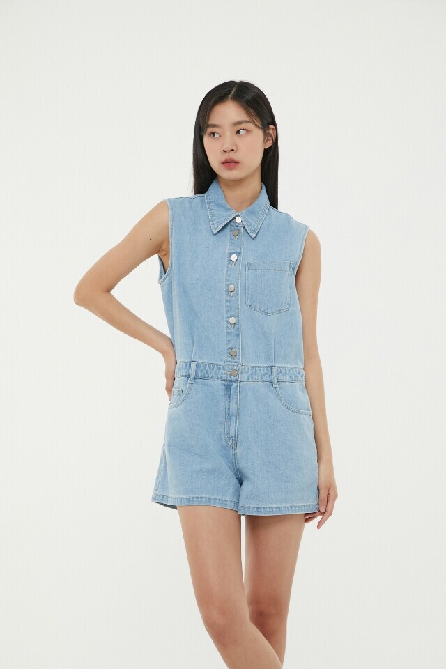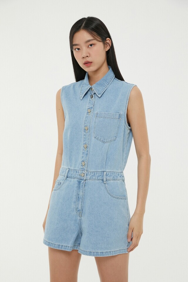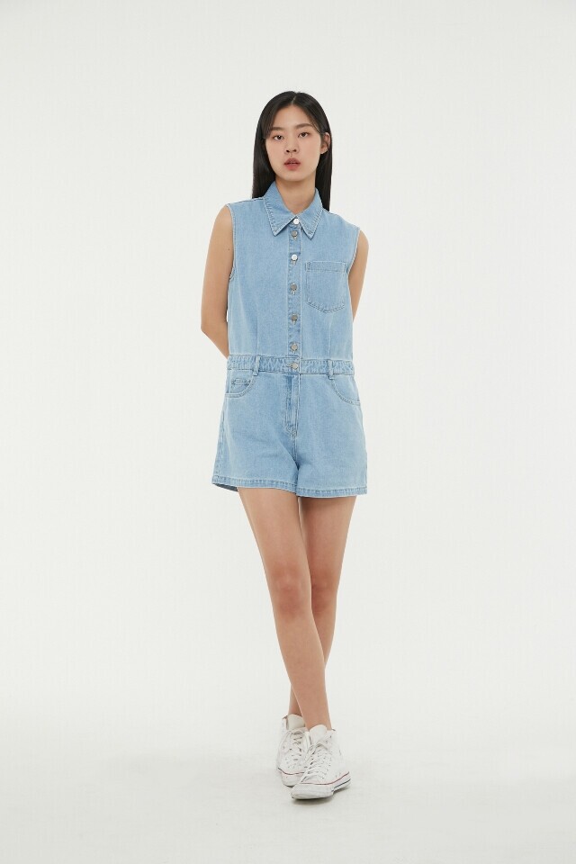 AP2DO464 민소매 숏 데님 점프슈트
