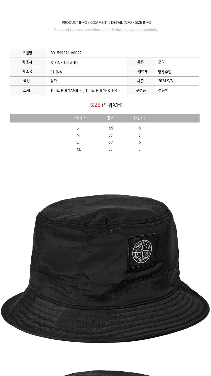 스톤 24SS 로고 패치 나일론 버킷햇 블랙 801599376 V0029