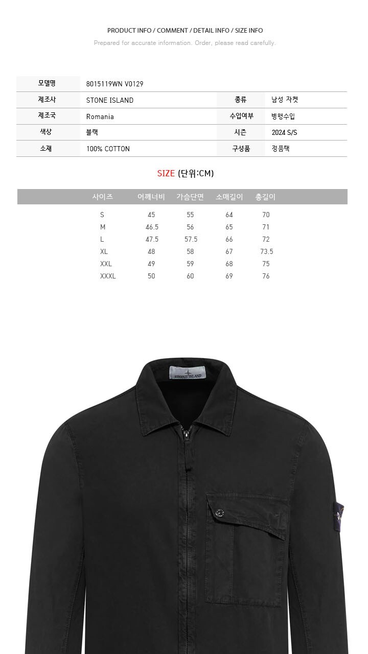 스톤 24SS 와펜 패치 포켓 오버 셔츠 자켓 블랙 8015119WN V0129