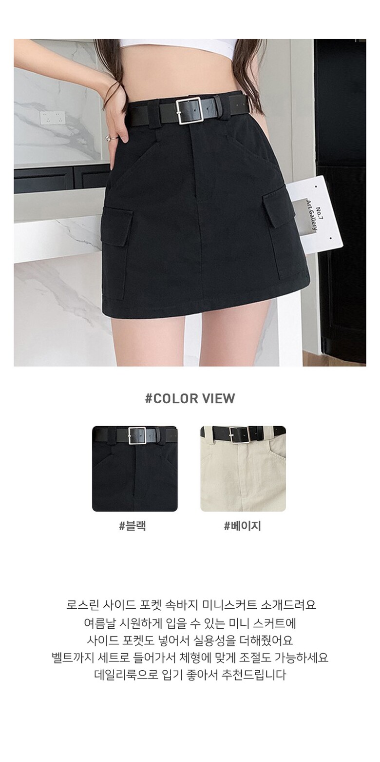[~77까지][벨트+스커트set]로스린 사이드 포켓 속바지 미니스커트