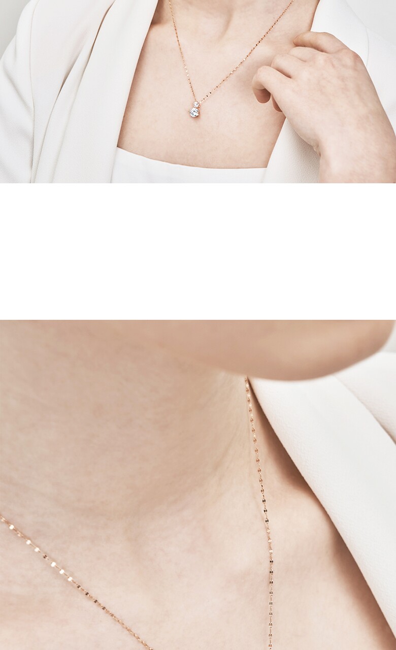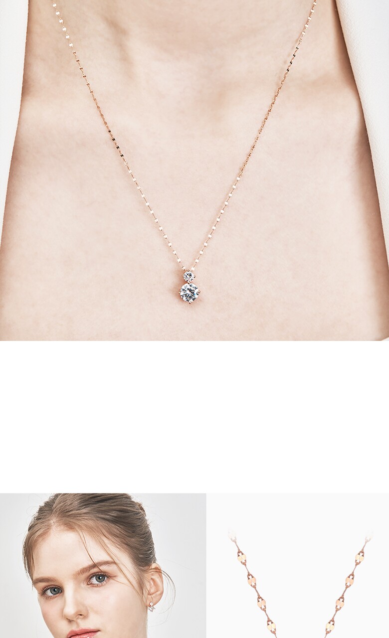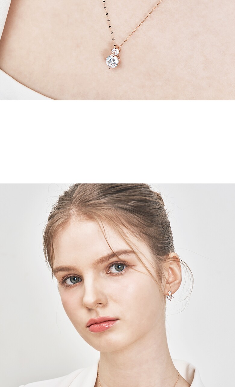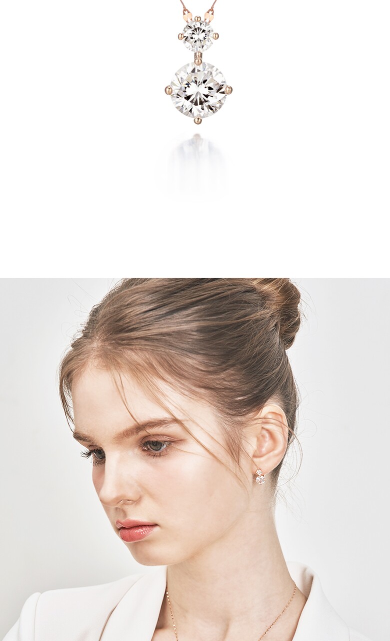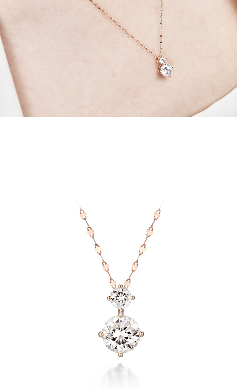 14K 더블 스톤 원형 큐빅 목걸이EL14NN014