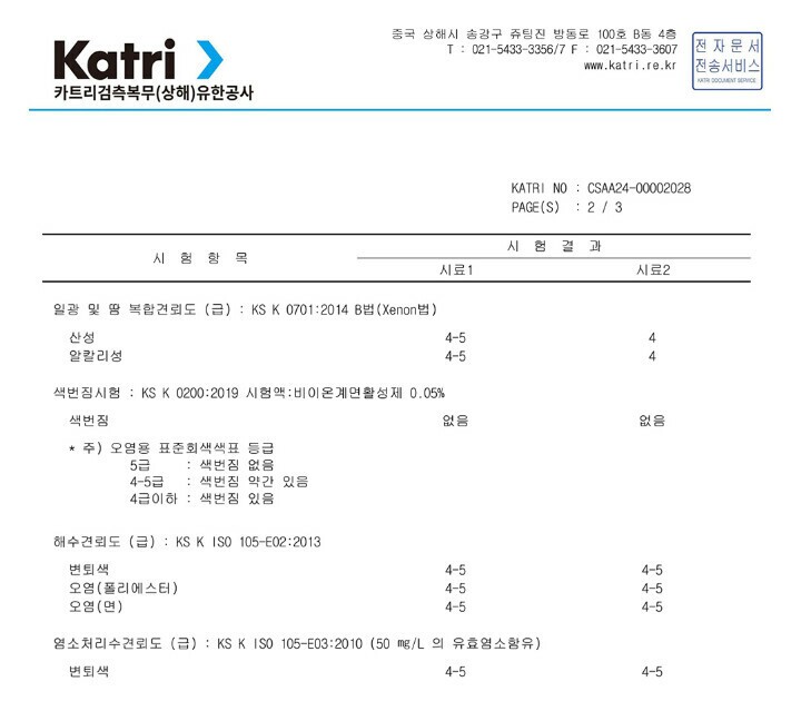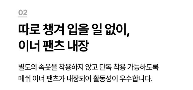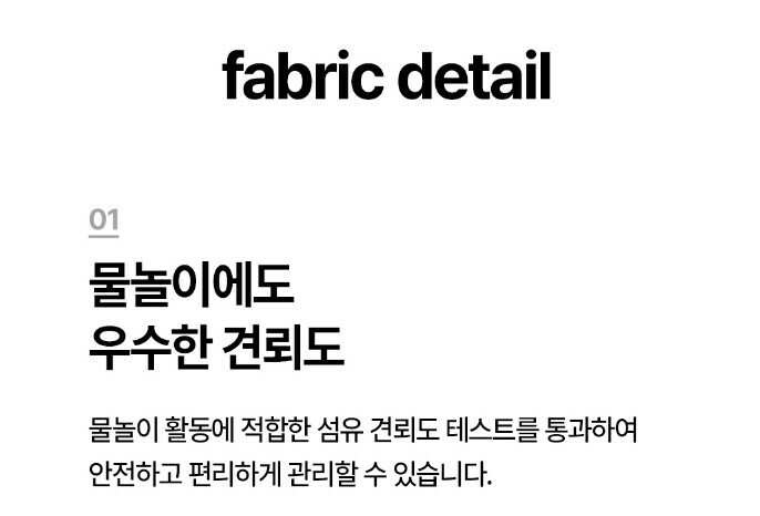 | 1. 제품 소재 (섬유의 조성 또는 혼용률을 백분율로 표시, 기능성인 경우 성적서 또는 허가서) | 상품상세참조 |