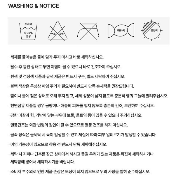 | 6. 세탁방법 및 취급시 주의사항 | 상품상세참조 |