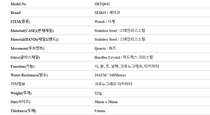 세이코 SBTQ041 스피릿 크로노그래프 타키미터 남성 메탈시계
