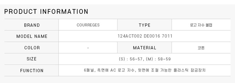 꾸레쥬 124ACT002 DE0016 7011 로고 자수 데님 여성 볼캡 모자