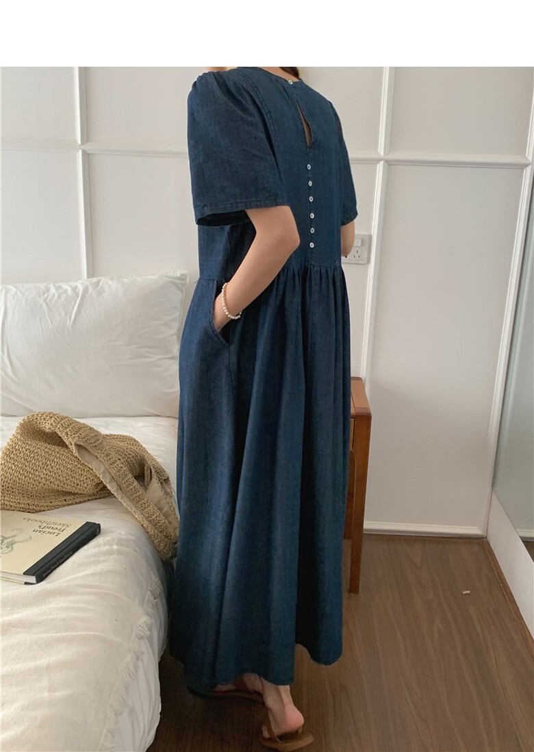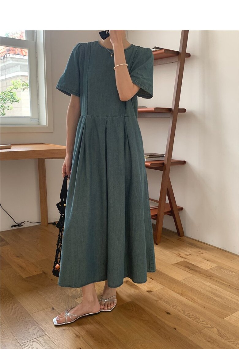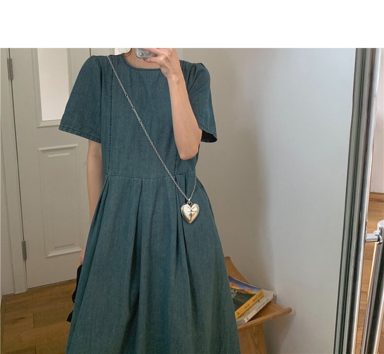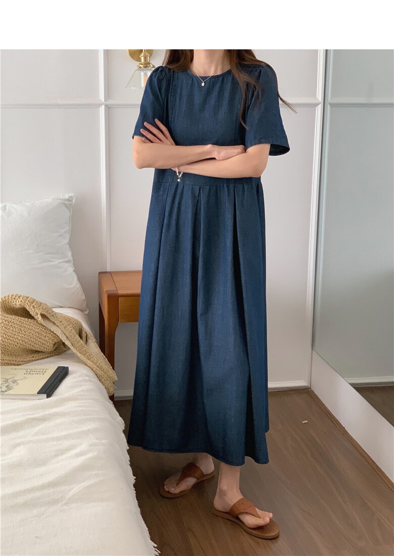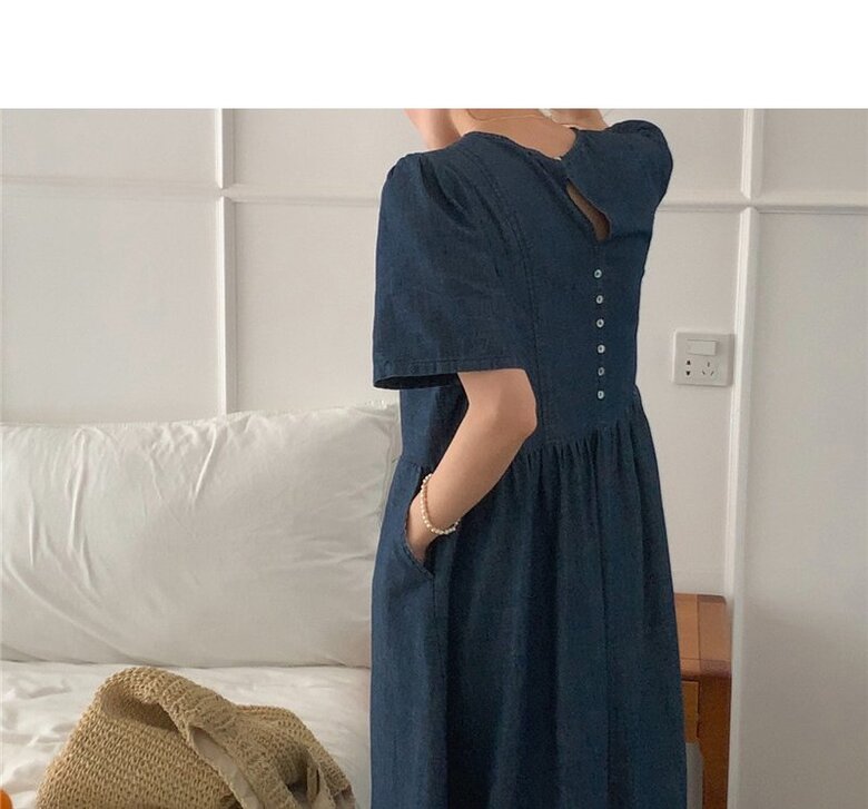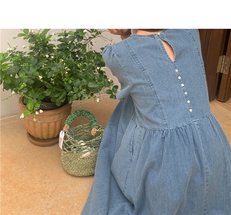 루즈 풀오버 뒷 버튼 미디 데님 원피스 3color_240711_CR09