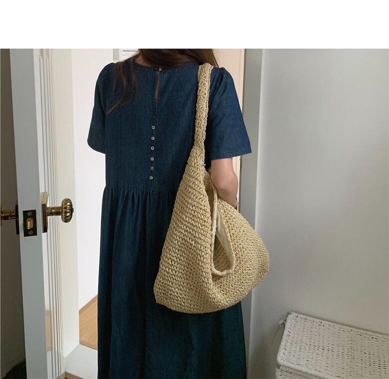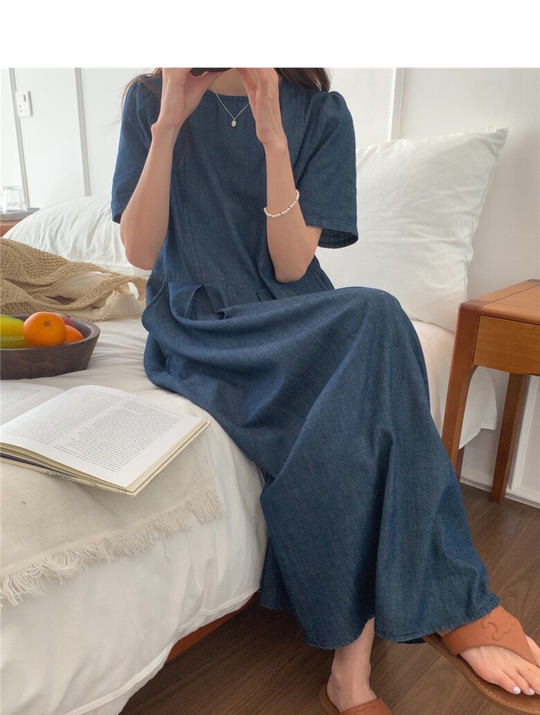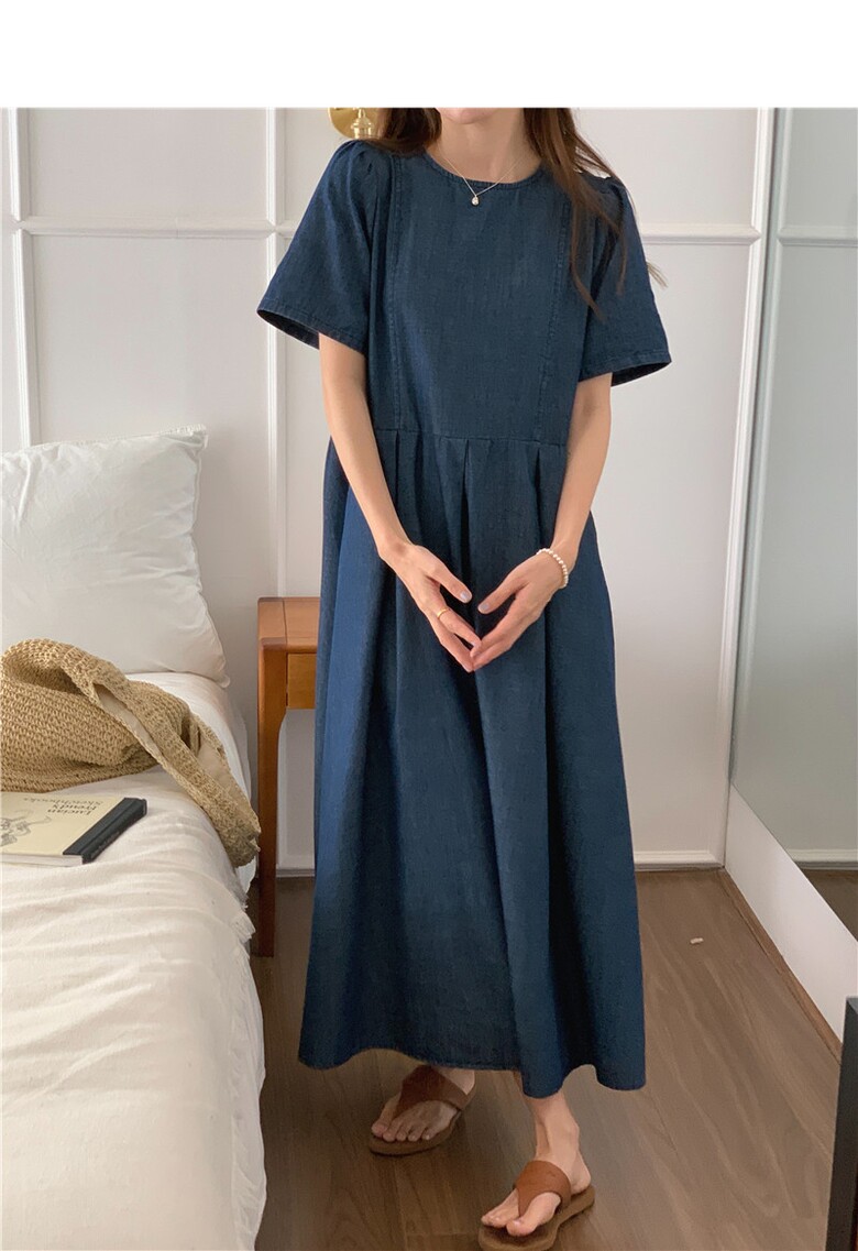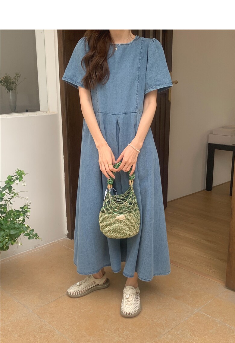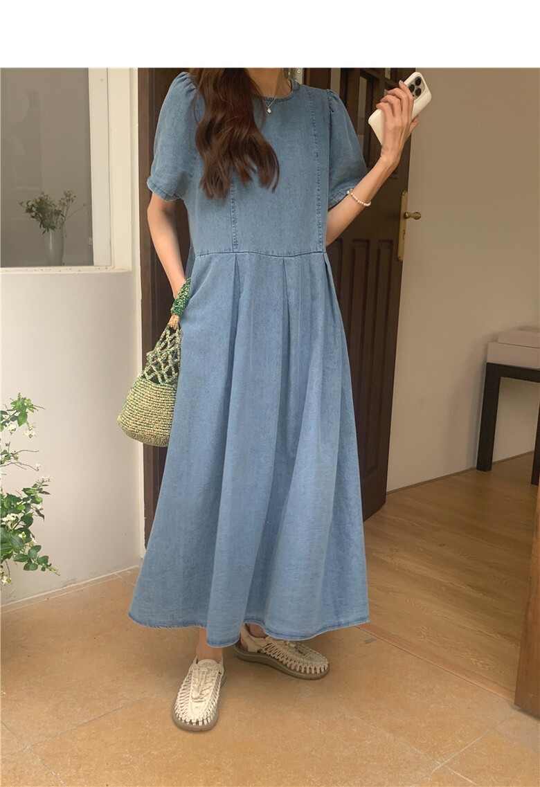 루즈 풀오버 뒷 버튼 미디 데님 원피스 3color_240711_CR09