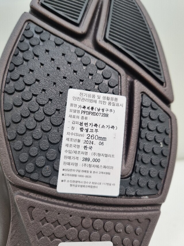 1. 제품 소재 (운동화인 경우에는 겉감, 안감을 구분하여 표시) | 소가죽 |